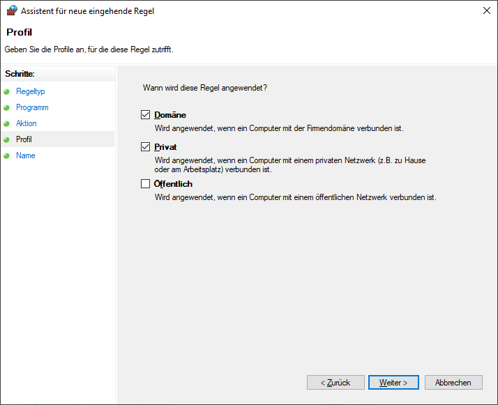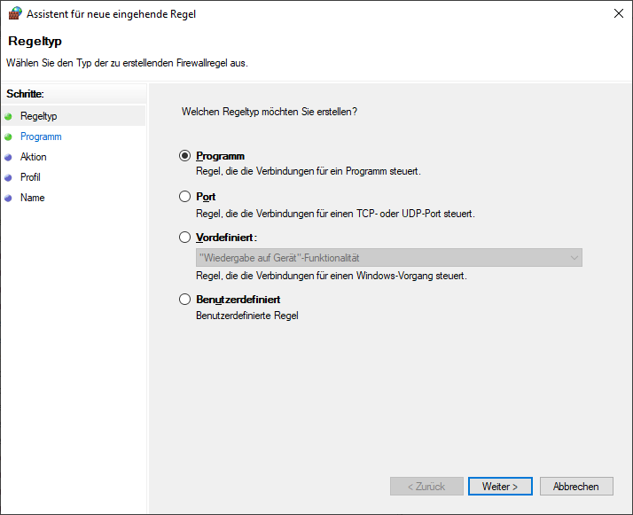 - In Windows die „Windows Defender Firewall mit erweiterter Sicherheit“ App aufrufen.
